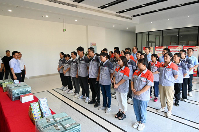 活動(dòng)中,慰問(wèn)組實(shí)地察看了公司生產(chǎn)車間,詳細(xì)了解公司安全生產(chǎn)、職工勞動(dòng)保護(hù)及防暑降溫工作情況,并為一線職工送上防暑降溫物資,叮囑他們要增強(qiáng)自我保護(hù)意識(shí),注意勞逸結(jié)合。慰問(wèn)組要求,國(guó)投中科公司要嚴(yán)格落實(shí)各項(xiàng)安全防護(hù)措施,科學(xué)合理安排職工作業(yè)、休息時(shí)間,營(yíng)造良好勞動(dòng)作業(yè)環(huán)境,用心用情關(guān)愛(ài)職工。