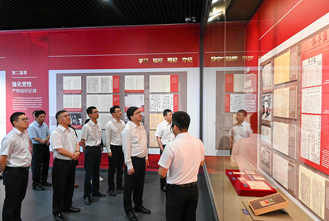 展覽透過一個個生動的案例,圍繞“擎旗抗戰(zhàn) 嚴(yán)明政治紀(jì)律”“強化黨性 嚴(yán)明組織紀(jì)律”“激濁揚清 嚴(yán)明廉潔紀(jì)律”“心系人民 嚴(yán)明群眾紀(jì)律”“建章立制 嚴(yán)明工作紀(jì)律”“立德立言 嚴(yán)明生活紀(jì)律”“所向披靡 奪取抗戰(zhàn)勝利”等七個篇章,生動展現(xiàn)了新四軍堅定崇高的信仰、守紀(jì)如鐵的作風(fēng)、嚴(yán)于律己的風(fēng)范、懲治腐敗的決心、親民愛民的情懷和艱苦奮斗的精神。集團領(lǐng)導(dǎo)班子認(rèn)真聽取講解介紹,用心學(xué)習(xí)體悟,表示將嚴(yán)格對照“六項紀(jì)律”,在學(xué)紀(jì)知紀(jì)明紀(jì)守紀(jì)上下功夫,在以學(xué)促干上持續(xù)用勁,把深化黨紀(jì)學(xué)習(xí)教育同貫徹落實省市委全會部署要求、抓好當(dāng)前各項工作結(jié)合起來,以實干實績實效為鹽城高質(zhì)量發(fā)展大局多作貢獻。