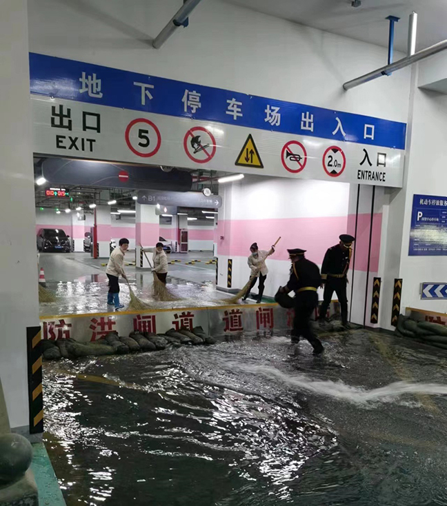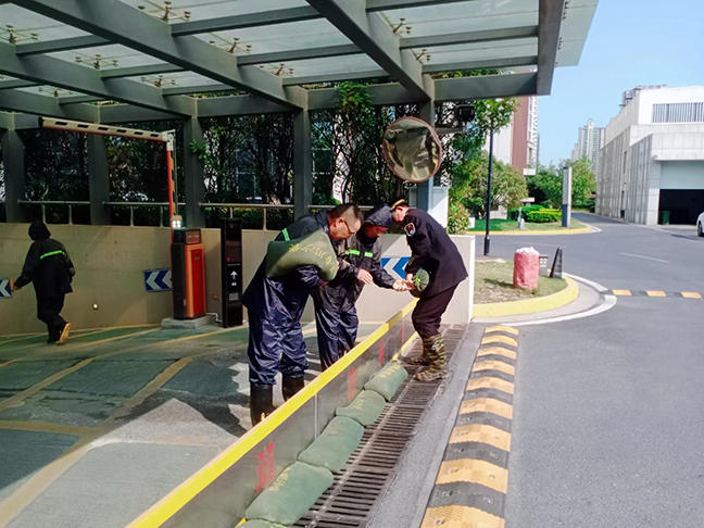 演練模擬持續(xù)暴雨導(dǎo)致地下車庫(kù)出現(xiàn)水情告急的情況。接到險(xiǎn)情后,防汛應(yīng)急小組立即啟動(dòng)應(yīng)急預(yù)案,及時(shí)疏散地下車庫(kù)內(nèi)的車輛,搬運(yùn)、安裝防洪擋板,有序壘砌防洪沙袋,并使用防水電源線啟動(dòng)潛水泵進(jìn)行排水,及時(shí)清理積水區(qū)域。在搶險(xiǎn)人員的共同努力下,險(xiǎn)情迅速得到了控制,大家分工明確、配合默契,工作流程規(guī)范,安全保障措施到位,進(jìn)一步檢驗(yàn)了防汛搶險(xiǎn)預(yù)案的實(shí)用性和可操作性,鍛煉了防汛搶險(xiǎn)隊(duì)伍的組織能力、快速反應(yīng)能力,提高了實(shí)戰(zhàn)水平。