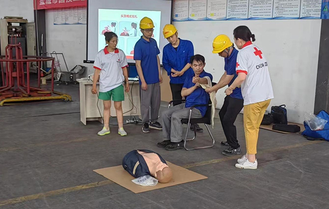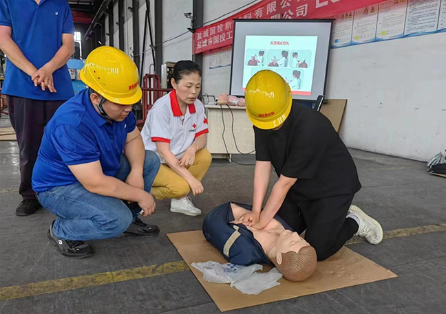 演練前,國投新材料公司“安全生產(chǎn)月”活動領(lǐng)導(dǎo)小組召開專題會議部署演練事宜,要求責(zé)任部門認(rèn)真落實(shí)任務(wù),精心設(shè)計(jì)演練方案,細(xì)化腳本、有序組織、確保質(zhì)量。演練邀請了市紅十字會講師到場指導(dǎo),圍繞工業(yè)生產(chǎn)中最容易發(fā)生的“觸電”和“機(jī)械傷害”事故展開,分別進(jìn)行了應(yīng)急救護(hù)知識培訓(xùn)、事故現(xiàn)場處置和救護(hù)技能實(shí)操練習(xí)?,F(xiàn)場人員密切配合,演練步驟環(huán)環(huán)相扣,達(dá)到了預(yù)期效果。