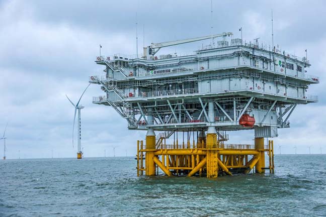 國能大豐H5#海上風電場項目由32臺GW184-6.45MW智能海上風電機組構成,坐落于大豐港水域港界之外,太平沙北側,輻射沙洲北端,其場區(qū)中心距離海岸約67公里。