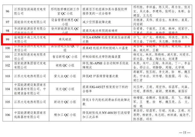 近日,鹽城國豐公司質(zhì)量管理小組的“降低6.45Mw機組變槳液壓油泄漏次數(shù)”與“液壓變?nèi)鞠到y(tǒng)Hydroll蓄能器系統(tǒng)升級”兩個課題,分別榮獲2025年度江蘇省電力行業(yè)QC小組發(fā)布一等成果與二等成果。