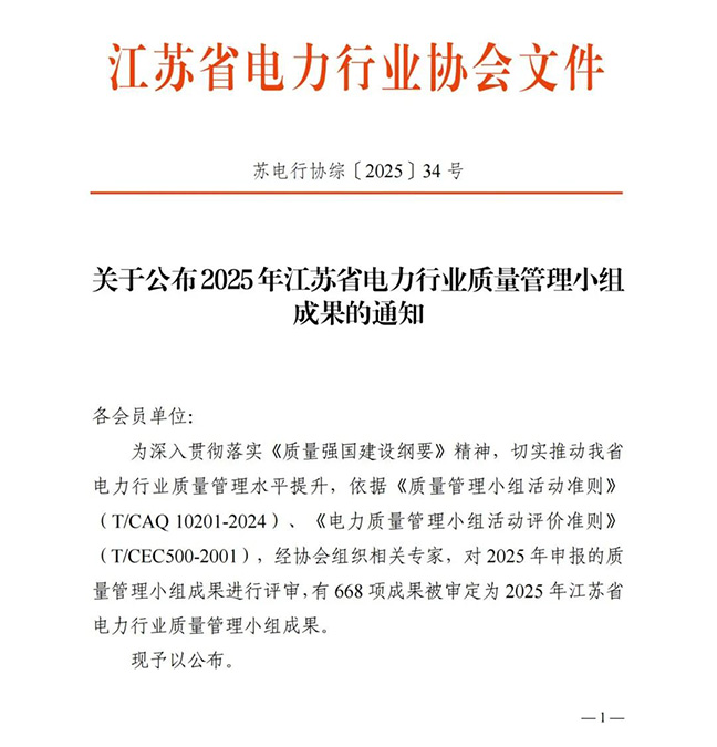 近年來,國豐公司在質(zhì)量管理領域收獲頗豐,榮獲江蘇電力行業(yè)質(zhì)量管理優(yōu)秀成果: