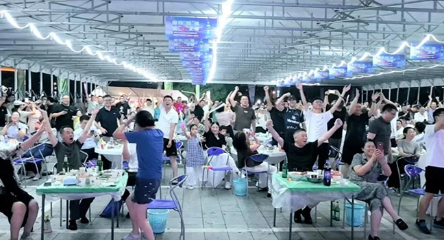 7月19日,為期一個(gè)月的“國(guó)投鮮鋒,盛蝦之宴”首屆龍蝦啤酒音樂(lè)節(jié)圓滿(mǎn)落幕。這場(chǎng)集美食、娛樂(lè)與互動(dòng)于一體的夏日盛宴,讓酒店戶(hù)外廣場(chǎng)成為市民夏夜打卡的“網(wǎng)紅地標(biāo)”——累計(jì)超1萬(wàn)人次的接待量、超50萬(wàn)元的營(yíng)收成績(jī),印證了活動(dòng)的超強(qiáng)吸引力。香辣、蒜蓉、十三香等十余種口味的龍蝦、滋滋作響的美味燒烤,與冰爽啤酒組成絕佳搭配。樂(lè)隊(duì)live演出奏響夏日旋律,趣味游戲互動(dòng)掀起陣陣歡笑,巨幕光影交織著歡呼與碰杯聲,讓整個(gè)廣場(chǎng)洋溢著熱烈歡快的夏日氣息。尤其在蘇超賽事期間,這里化身為第二觀賽現(xiàn)場(chǎng),讓球迷們?cè)诿朗撑c賽事的雙重加持下盡享狂歡。
