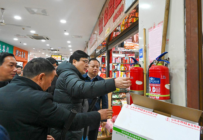 在先鋒國(guó)際廣場(chǎng)大潤(rùn)發(fā)超市內(nèi),前來(lái)采購(gòu)的市民絡(luò)繹不絕。張林海重點(diǎn)檢查了超市消防安全制度落實(shí)、微型消防站建設(shè)、電氣線路敷設(shè)、安全疏散條件、安全員配備、消防設(shè)施設(shè)置及運(yùn)行等情況。他指出,佳節(jié)來(lái)臨,超市人流量大、堆積貨物多,要加強(qiáng)人流監(jiān)測(cè)和疏導(dǎo)工作,抓好場(chǎng)所消防安全管理,把各項(xiàng)措施落實(shí)到位、各項(xiàng)責(zé)任夯實(shí)到位、各個(gè)細(xì)節(jié)考慮到位,為市民提供安全、放心的購(gòu)物環(huán)境。要堅(jiān)持“人防、技防、物防”同向發(fā)力,緊盯超市、臨街店鋪等多業(yè)態(tài)混合場(chǎng)所,加強(qiáng)日常監(jiān)管和從業(yè)人員消防安全培訓(xùn)力度,常態(tài)化開展應(yīng)急演練,確保在關(guān)鍵時(shí)候拉得出、打得響。