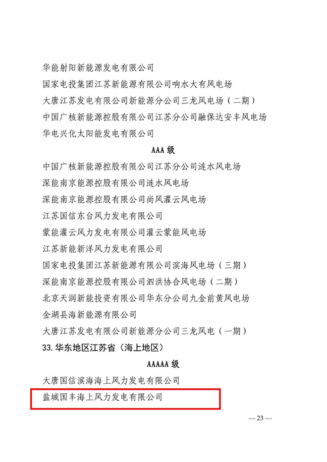 近日,中國(guó)電力企業(yè)聯(lián)合會(huì)公布2024年度全國(guó)風(fēng)電場(chǎng)生產(chǎn)運(yùn)行指標(biāo)評(píng)比結(jié)果。由鹽城國(guó)投集團(tuán)運(yùn)營(yíng)的國(guó)能大豐H5#海上風(fēng)電場(chǎng),在全國(guó)3511家參評(píng)風(fēng)電場(chǎng)中脫穎而出,獲評(píng)行業(yè)最高榮譽(yù)——“AAAAA級(jí)”風(fēng)電場(chǎng)。此次評(píng)選中,華東地區(qū)江蘇省(海上地區(qū))僅有2家風(fēng)電場(chǎng)獲此殊榮,其中,國(guó)能大豐H5#海上風(fēng)電場(chǎng)也是全國(guó)唯一一家獲評(píng)“AAAAA級(jí)”的地級(jí)市國(guó)有企業(yè)運(yùn)營(yíng)風(fēng)電場(chǎng),彰顯出國(guó)投集團(tuán)在新能源領(lǐng)域,特別是海上風(fēng)電運(yùn)營(yíng)管理方面的強(qiáng)勁實(shí)力。
