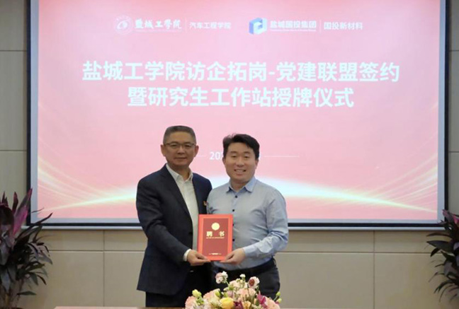 雙方還簽訂了黨建聯(lián)盟協(xié)議,王資生為國(guó)投新材料公司進(jìn)行研究生工作站授牌,國(guó)投新材料公司為鹽城工學(xué)院汽車工程學(xué)院副院長(zhǎng)鄭竹安頒發(fā)“科技副總”聘書。雙方一致表示,要以此次合作為契機(jī),搭建學(xué)習(xí)交流平臺(tái),在產(chǎn)學(xué)研深度融合、學(xué)院學(xué)生就業(yè)上進(jìn)一步加強(qiáng)溝通對(duì)接、深化戰(zhàn)略合作,攜手譜寫校企合作新篇章。